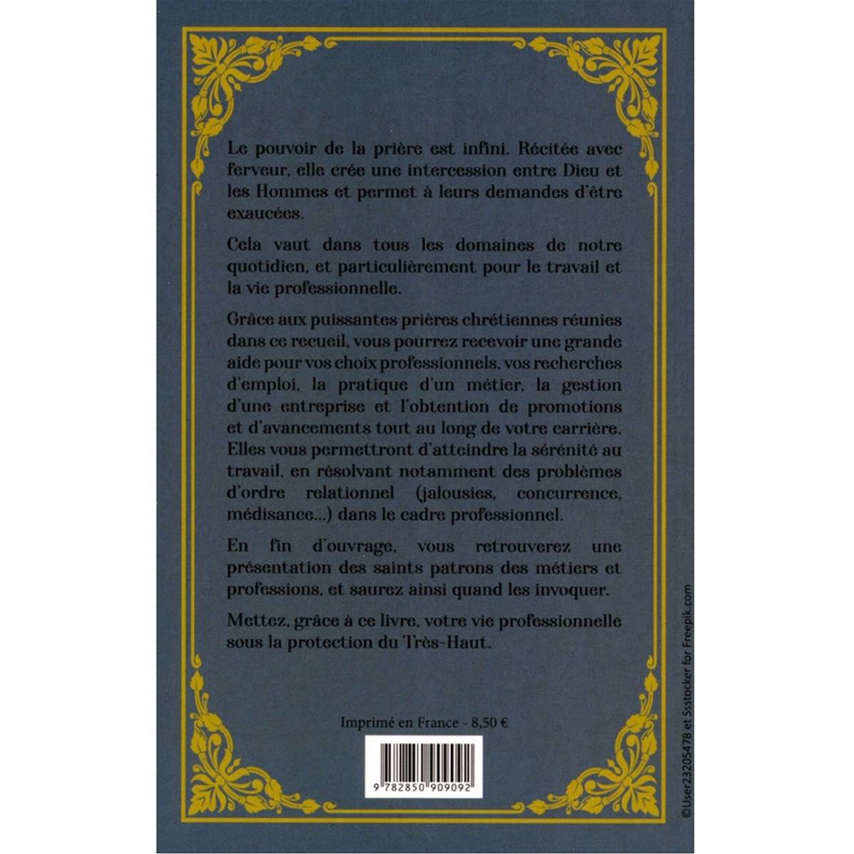 Grâce aux puissantes prières chrétiennes réunies dans ce recueil, vous pourrez recevoir une grande aide pour vos choix professionnels, vos recherches d'emploi, la pratique d'un métier, la gestion d'une entreprise et l'obtention de promotions et d'avancements tout au long de votre carrière. Elles vous permettront d'atteindre la sérénité au travail, en résolvant notamment des problèmes d'ordre relationnel (jalousies, concurrence, médisance...) dans le cadre professionnel.